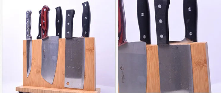 Powerful magnets securely hold knives in place to prevent slipping or falling.
